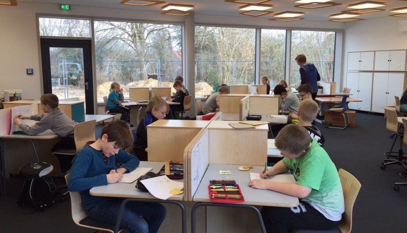 Mit der Möglichkeit, dass zwei Lehrkräfte in einer Lerngruppe arbeiten und durch die getrennten Räumlichkeiten unterschiedliche Arbeitsformen anbieten können, ist diese Art des Unterrichts einfacher umzusetzen.